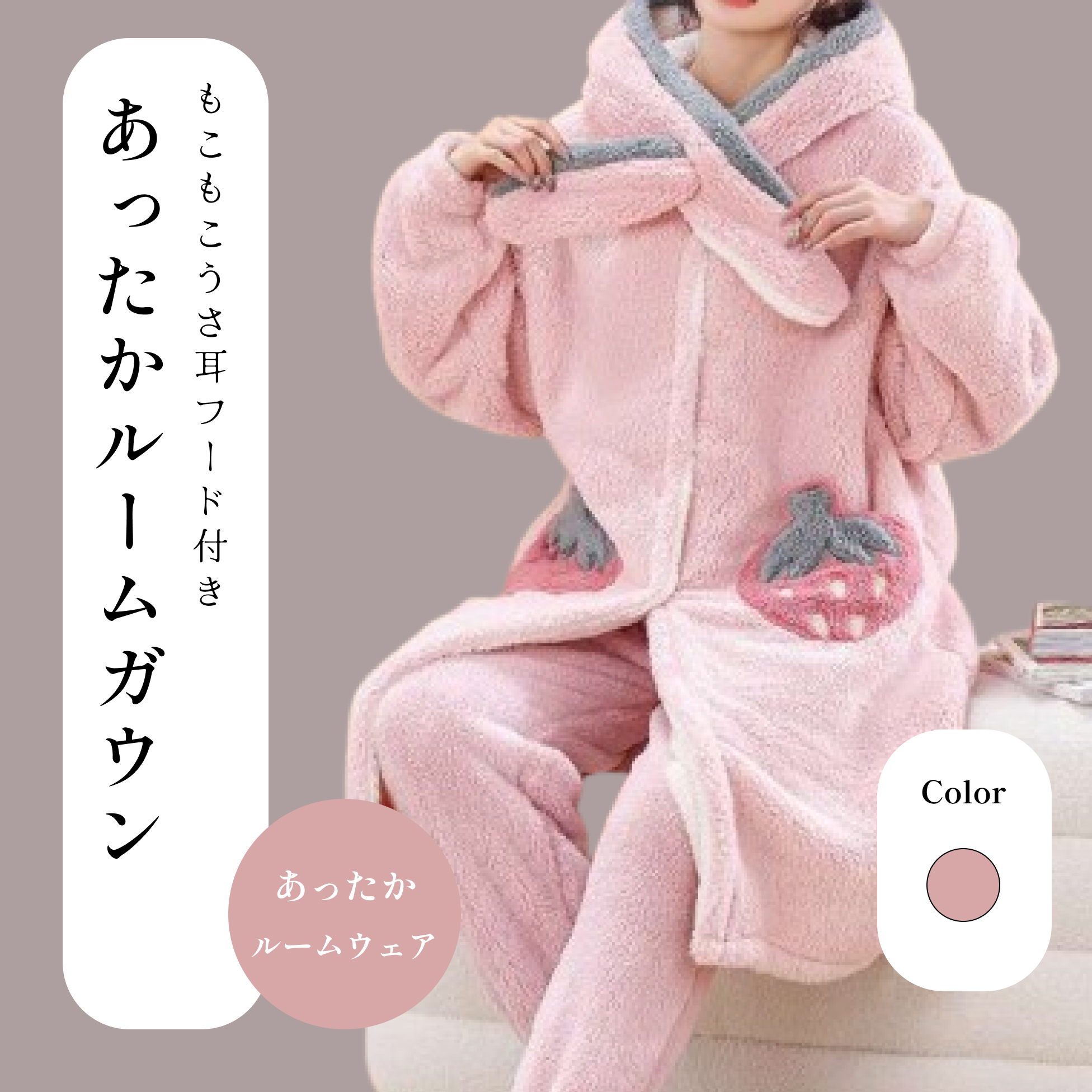 モテる可愛いウサギ耳付きもこもこルームウェアガウン
