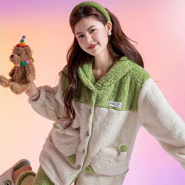 可愛いモコモコ暖かパジャマセットアップ