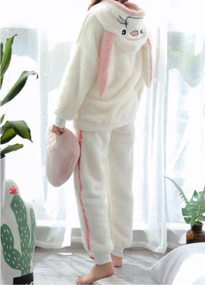 このパジャマセットは、ふわふわとしたウサギの耳がポイントです。