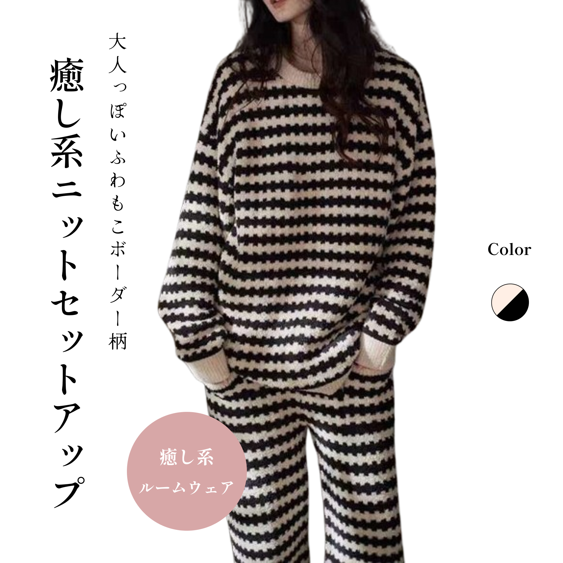 30代女性におすすめふわもこボーダー柄ルームウェア上下セット
