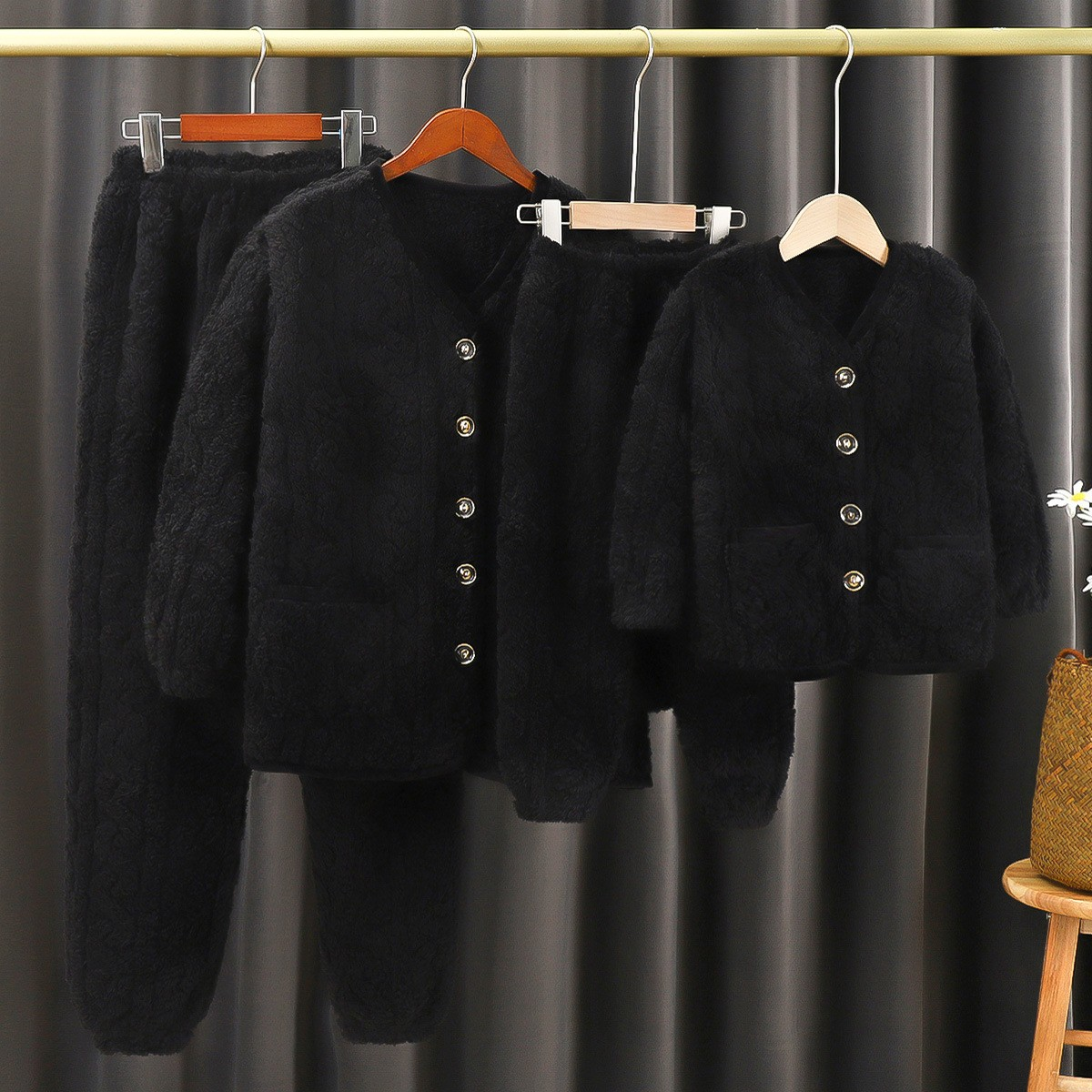 ふんわりとしたもこもこ素材を使用したルームウェアセット。リラックス感あふれるゆったりシルエットが特徴。長袖カーディガンとロングパンツの組み合わせは、寒い季節の自宅でのくつろぎタイムにぴったり。シンプルなデザインに黒のパイピングがさりげないアクセントを加え、心地よさとスタイルを両立させています。自宅での贅沢なひとときをお楽しみください。