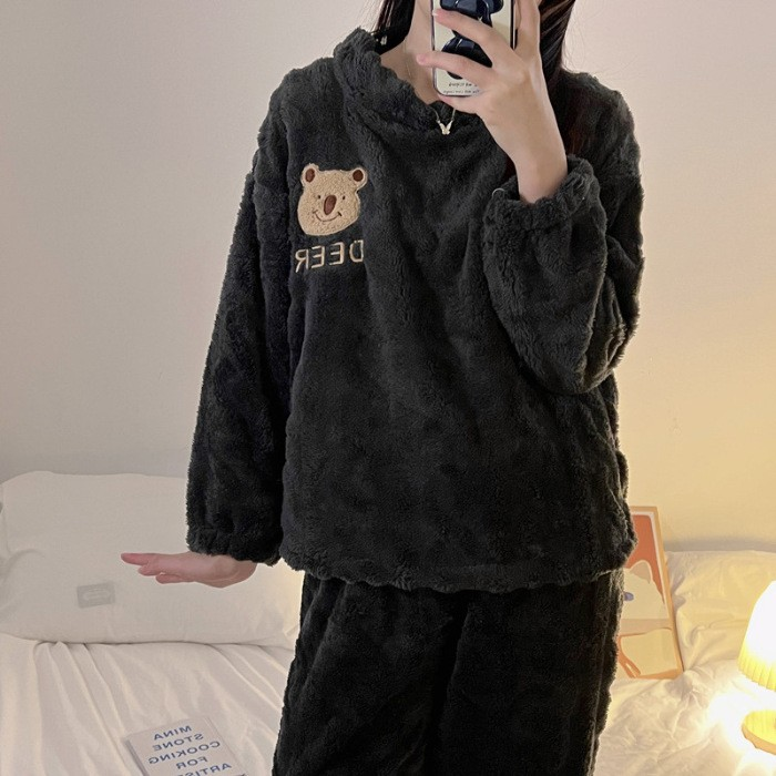 リラックスしたい時に最適な上下セットのルームウェア。フリル襟とリボンが魅力的なトップスと、ゆったりしたパンツの組み合わせで、心地よい着心地を実現。柔らかな素材が肌に優しく、おうち時間をより特別なものに演出します。優雅で快適な時間を楽しむための一着です。