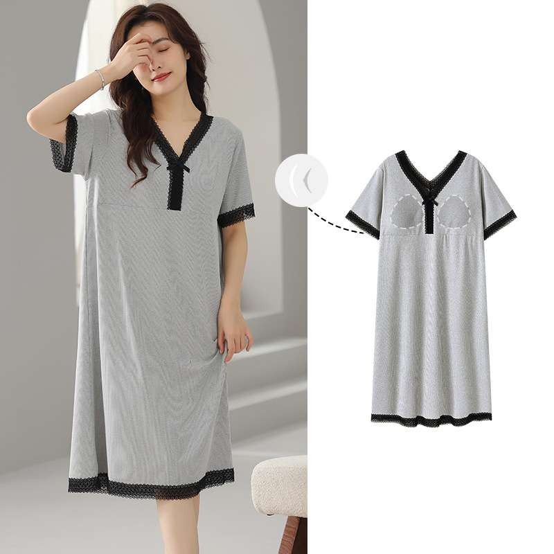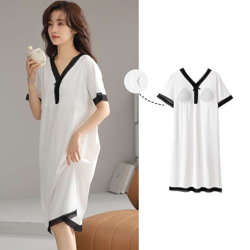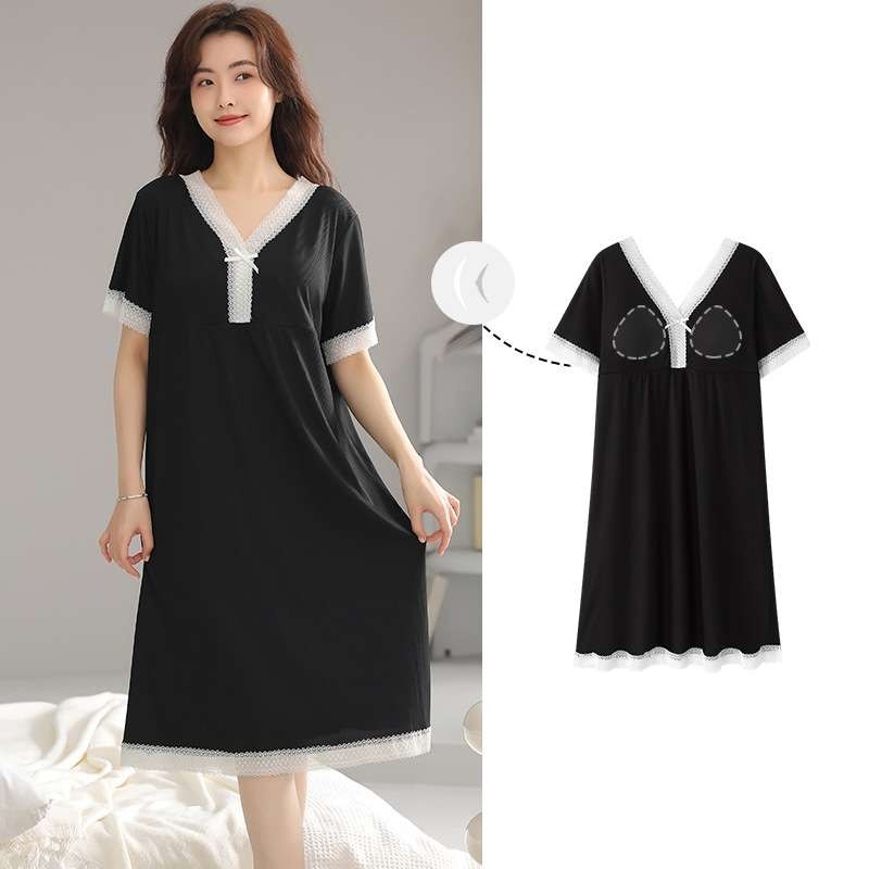 胸元にパッドが内蔵されたこのワンピースは、快適さとスタイルを両立。取り外し可能なパッドで洗濯も簡単に行えます。ゆったりとしたシルエットが体型をしっかりカバーし、レース使いがエレガントな印象を与えます。柔らかな素材が心地よい眠りをサポートする、ルームウェアとして最適な一着です。自宅でのリラックスタイムをより特別にしてくれるアイテムです。
