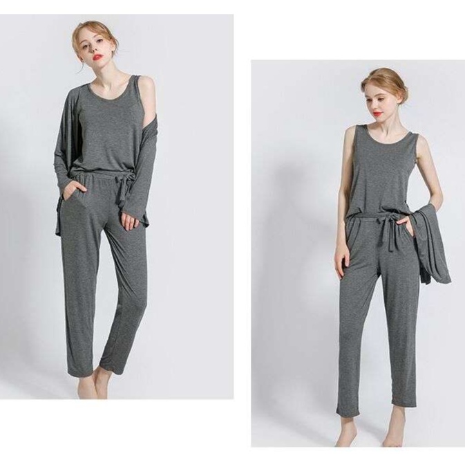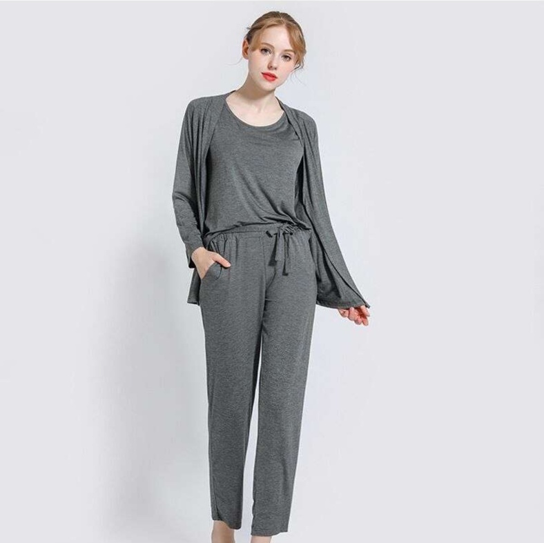 バストパッド付きキャミソール、ロングパンツ、羽織りやすいカーディガンがセットになった上品なルームウェア。柔らかな素材が快適な着心地を提供し、自宅でのリラックスタイムを優雅に演出します。ゆったりとしたデザインで体型カバーも叶い、機能性と女性らしさを兼ね備えた一着です。