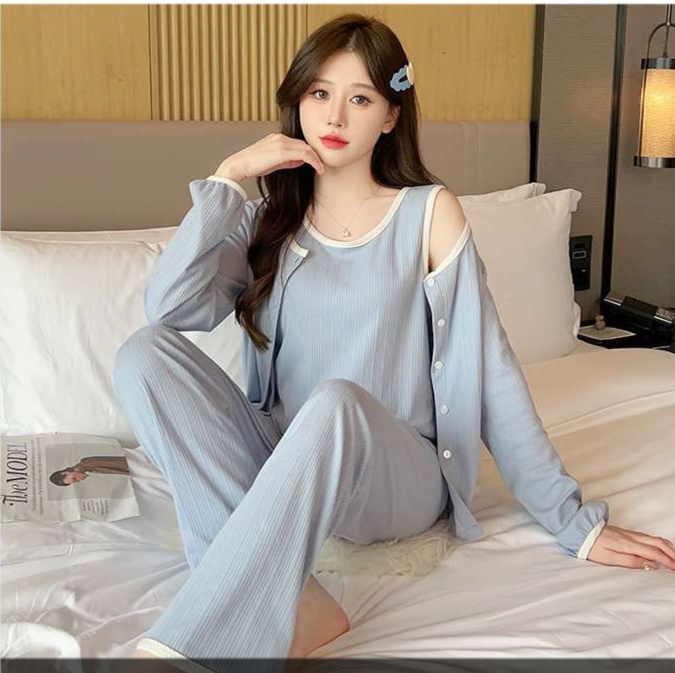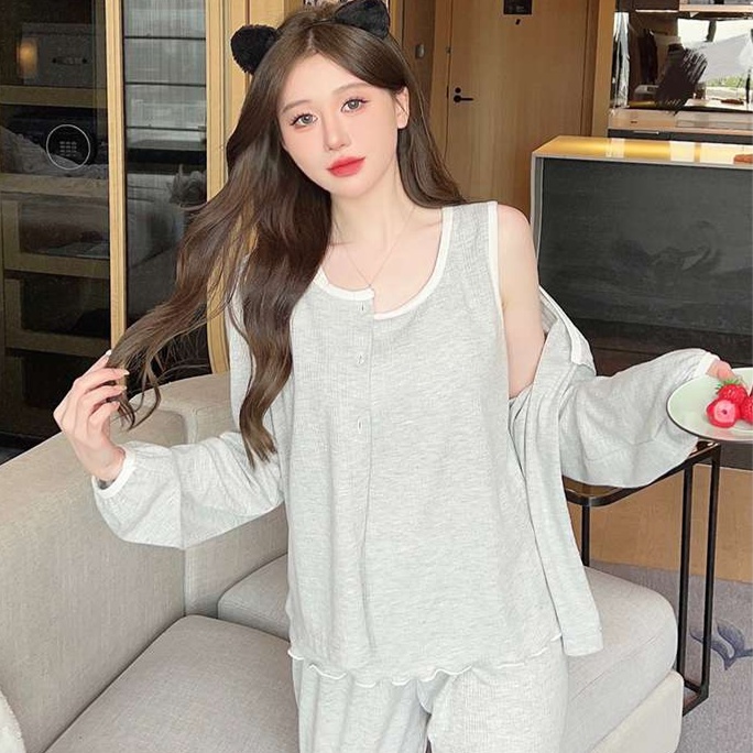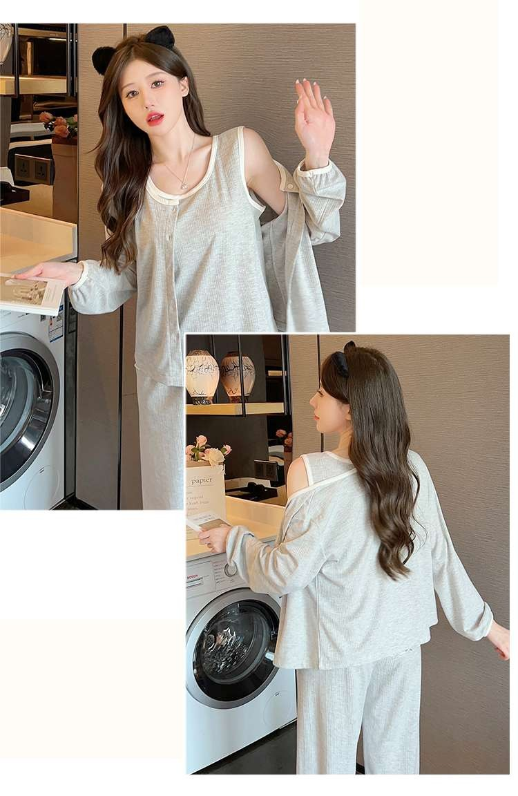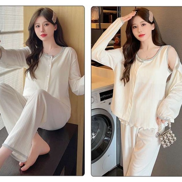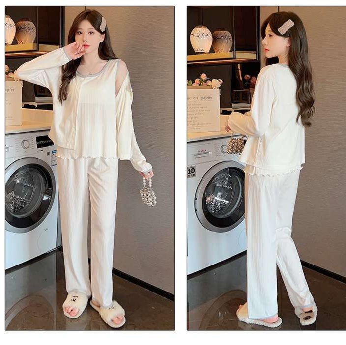 トップス、パンツ、カーディガンの3点セットで、組み合わせ次第で様々なスタイルを楽しめます。