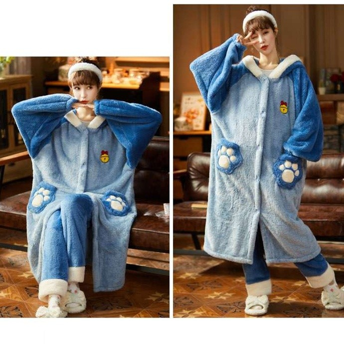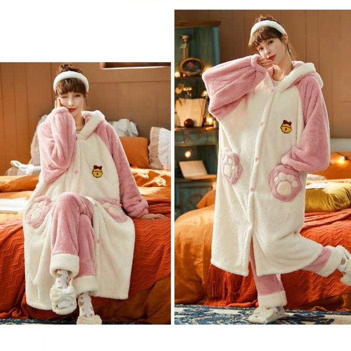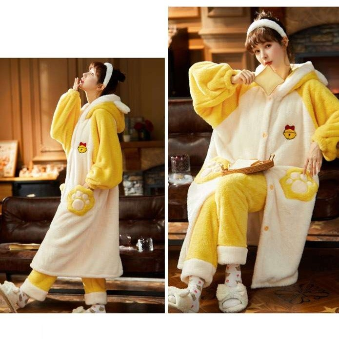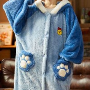 柔らかなふわふわの生地で仕立てられた全身タイプのルームウェア。耳付きフードと足裏デザインが愛らしいアクセントとなり、リラックスタイムを楽しく彩ります。快適な着心地と遊び心を兼ね備えたデザインで、おうち時間をさらに特別なひとときに演出する一着です。