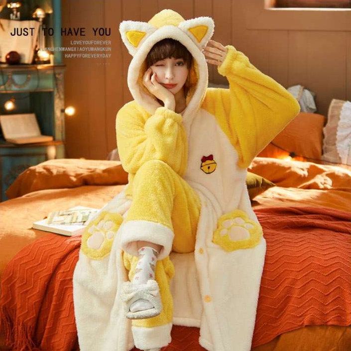 耳付きフード&足裏デザインが可愛い全身ルームウェア◎