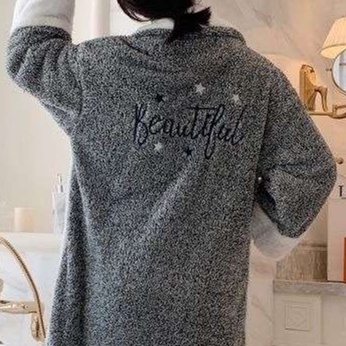 贅沢なふわふわ生地が心地よい暖かさを提供する上質なガウン。柔らかな素材が優しく包み込み、リラックスタイムを特別なものにします。大きなポケットや洗練された襟元のデザインが魅力を引き立て、実用性と上品さを兼ね備えた一着。自宅でのリラックスしたひとときを、快適さとエレガンスで演出するルームウェアとして最適です。