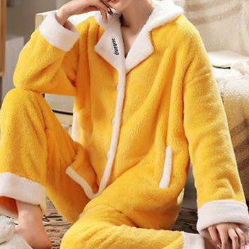 もこもことした柔らかい素材が使用されており、着心地の良さと暖かさを感じさせます。