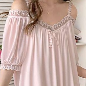 華奢な肩を引き立てるオフショルダーデザインのネグリジェ。上品なレースと軽やかな素材感がリラックスタイムを優雅に演出します。ふんわりとしたシルエットが体型をカバーし、快適な着心地を実現。自宅で過ごす特別な時間を、エレガントに彩るルームウェアとして最適です。贅沢な気分を味わえる一着をぜひお楽しみください。