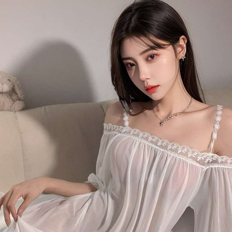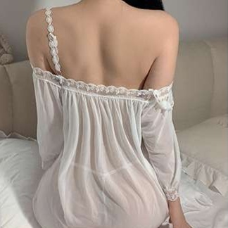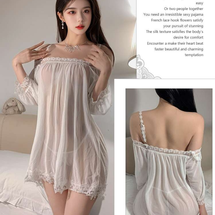透け感が魅力のエレガントなオフショルダーネグリジェ。軽やかな素材が作り出す柔らかなシルエットは、リラックスしたい夜のひとときにぴったり。肩紐とオフショルダーのデザインが華奢なラインを際立たせ、繊細なレースの装飾が女性らしさを引き立てます。寝間着やリラックスタイムに最適な一着で、心地よい眠りと優雅な時間を提供します。自宅での特別な瞬間に、ぜひお試しください。