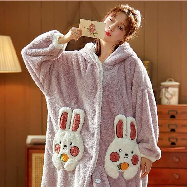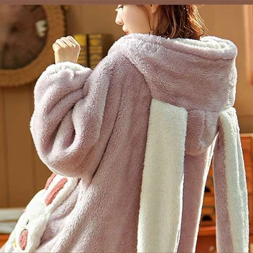 耳付きフードとポンポンが可愛いふわふわガウン◎