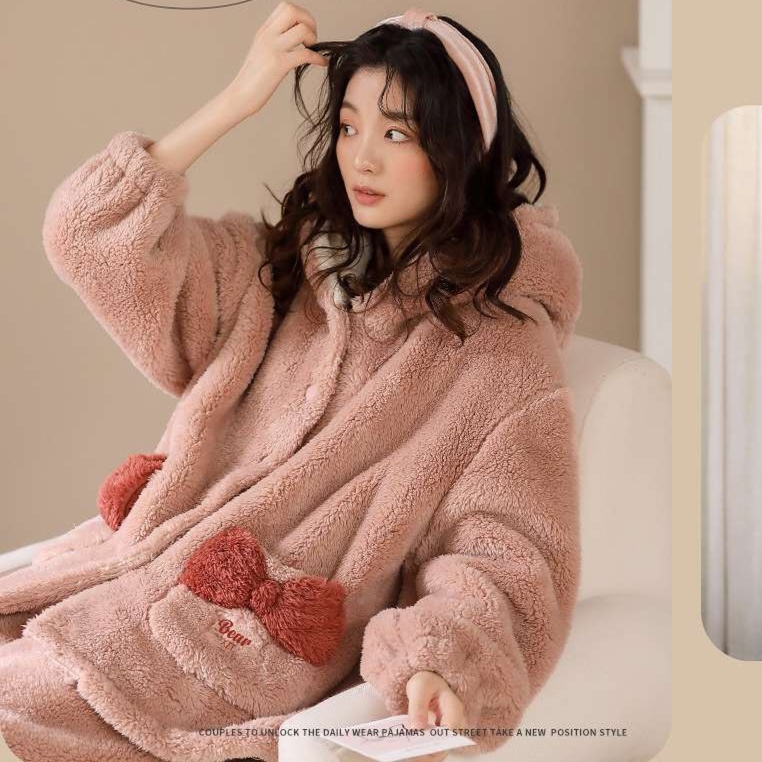 愛らしいクマ耳フード付きの着ぐるみ風セットアップ、リラックスしたい時にぴったりのルームウェア。ふわふわで柔らかな生地が心地よく、寒い季節にも暖かさを提供。クマの耳と可愛い装飾が、居心地の良いおうち時間をより楽しく演出。部屋着としての機能性も兼ね備えた一着で、心も体も癒される時間を楽しめる。快適さと可愛さを両立させた、自分へのご褒美に最適なアイテム。