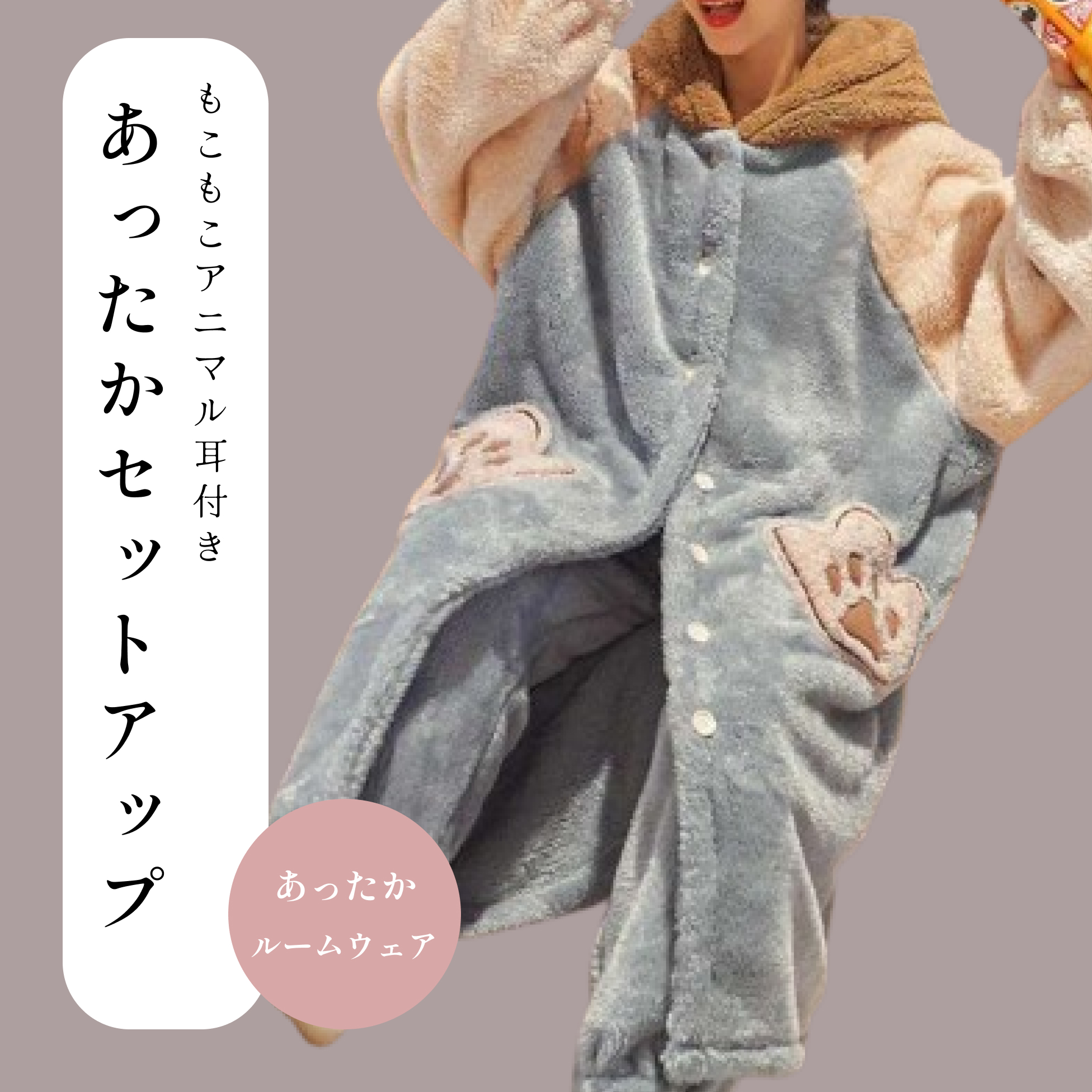 胸元や足元に施された愛らしい肉球デザインが、部屋着に遊び心をプラスします。