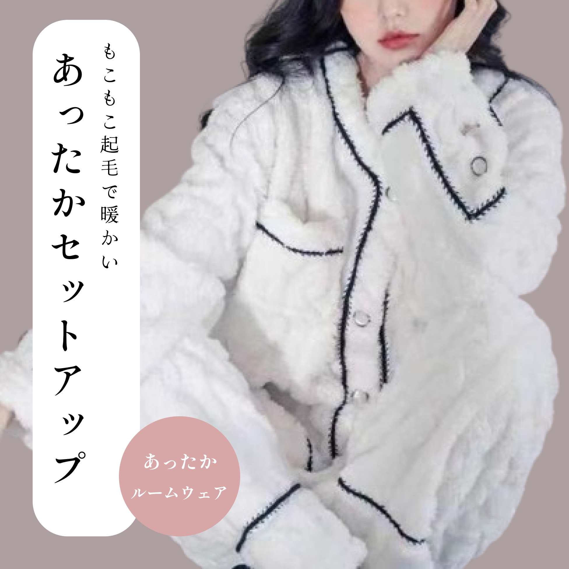 起毛素材とパイピングが魅力の暖かルームウェアセット◎