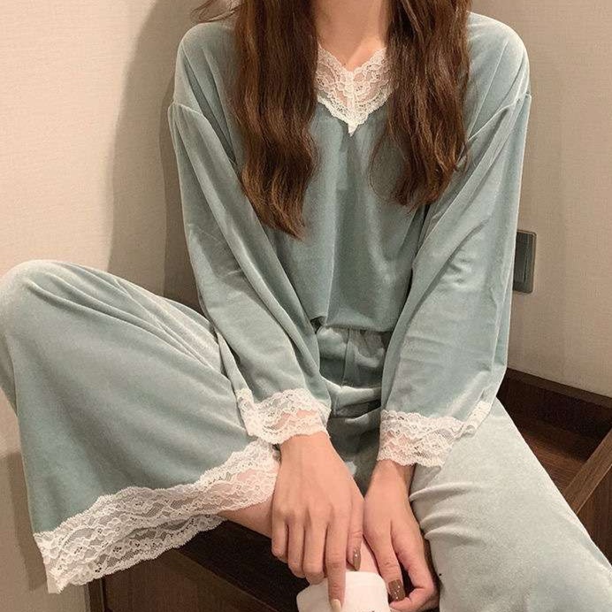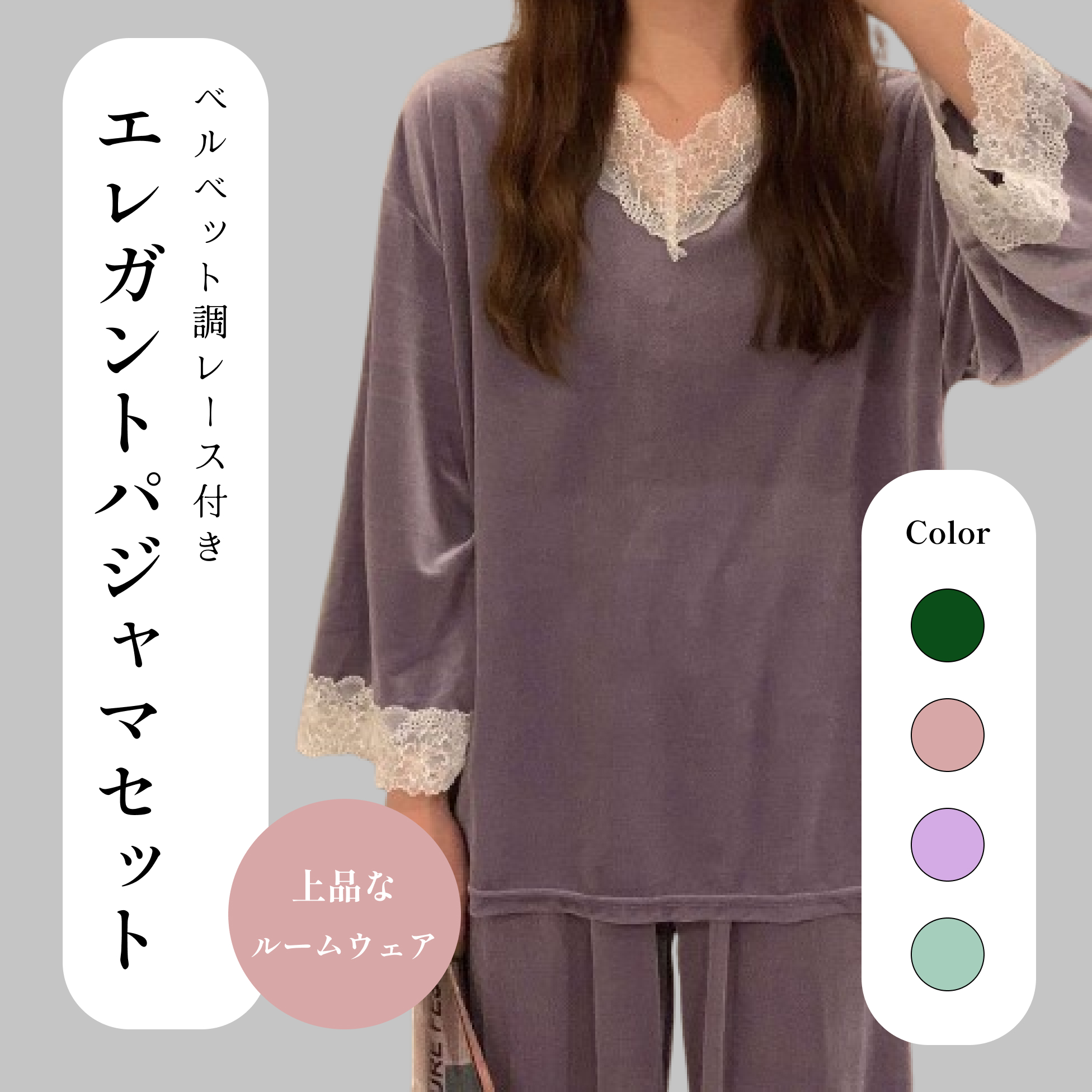 上品なレースと滑らかな素材感が魅力の贅沢ルームウェアセット◎