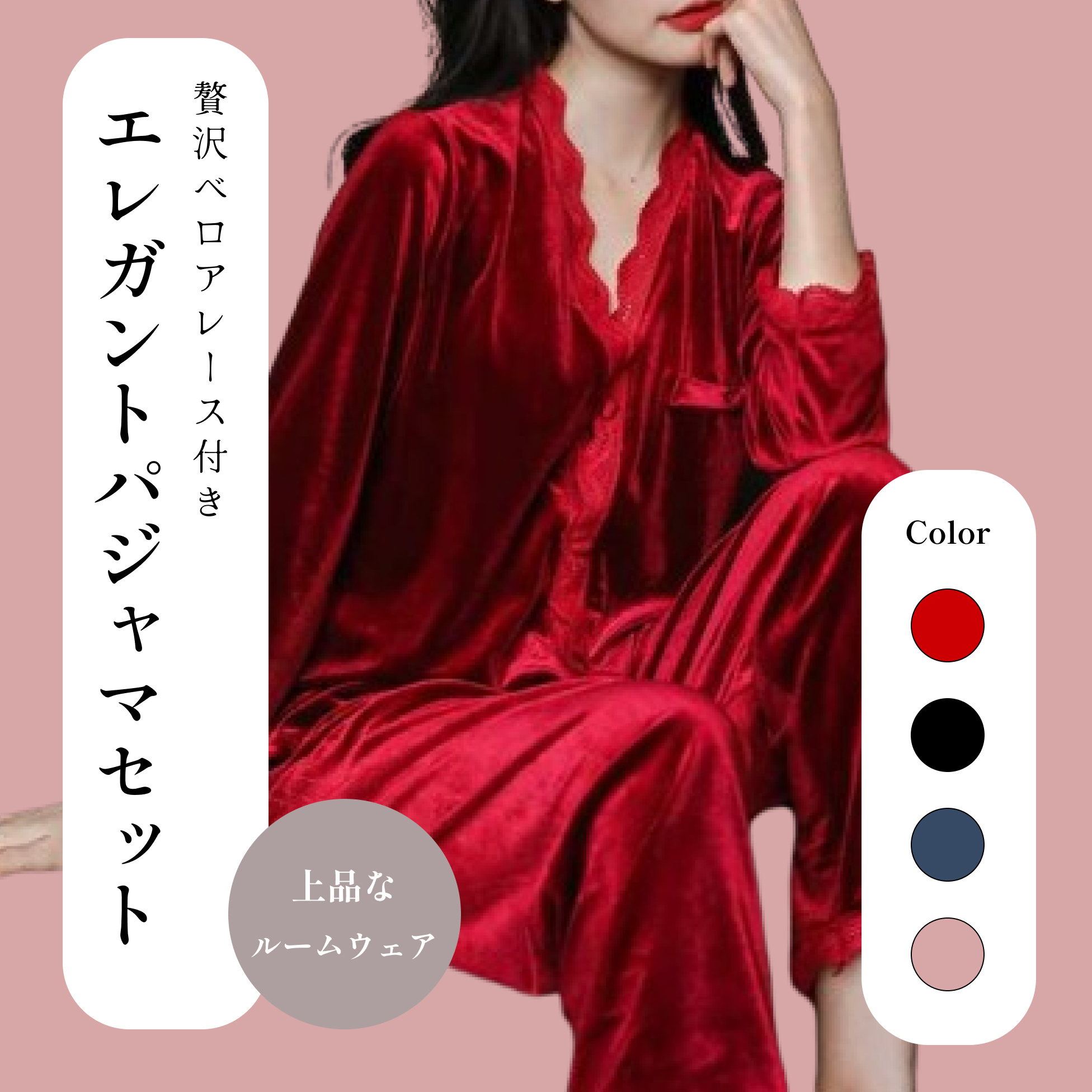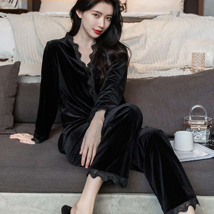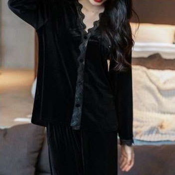 上質ベロアとレース使いが魅力のエレガントルームウェア◎