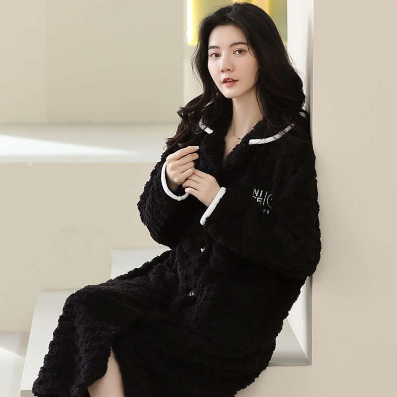心地よい肌触りのロング丈ガウンが、リラックスタイムをより特別に演出します。上質な素材を使用し、ふんわりとした感触が魅力的。大きな襟と実用的なポケットが暖かさを提供し、前開きのデザインで着脱も楽々。優雅なシルエットで、ルームウェアとしての洗練された雰囲気を楽しめる一着です。自宅でのくつろぎを贅沢に彩るアイテムとしておすすめします。