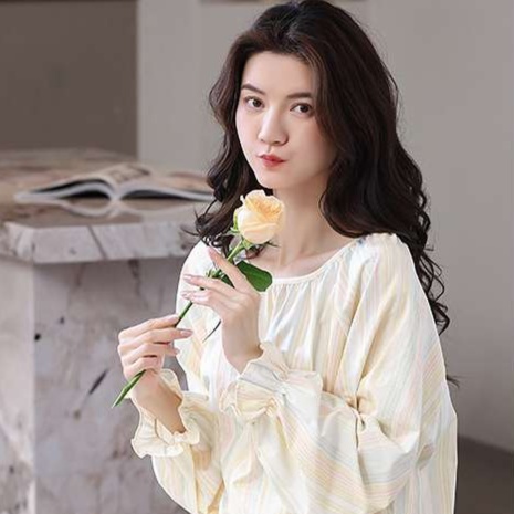 ふんわりと軽やかな着心地が魅力のルームウェア。胸元には便利なパッドが付いており、バストラインを美しく整えるデザインです。袖と裾に施されたギャザーデザインが可愛らしさを引き立て、リラックスタイムを優雅で心地よいひとときに彩ります。機能性とデザイン性を兼ね備えた一着です。