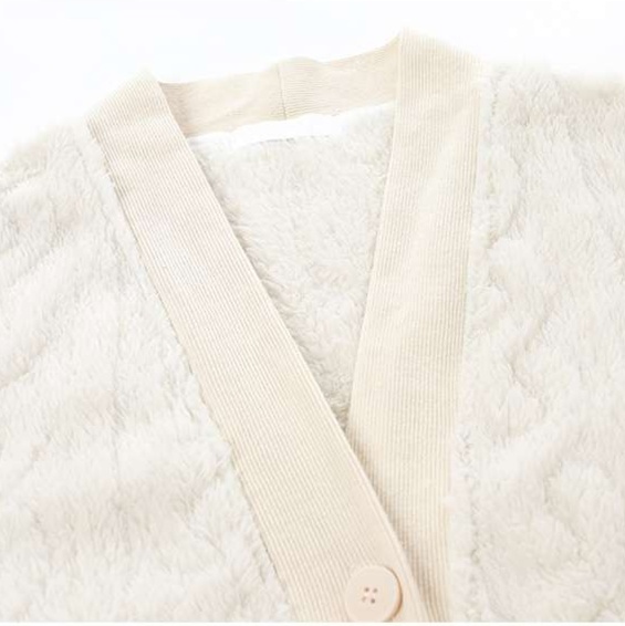 たっぷりとした着丈で体全体を包み込むため、朝晩の冷え対策やくつろぎ時間に最適です。