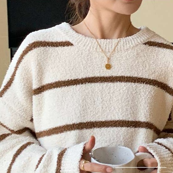 トレンド感のある太めのボーダーパターンで、部屋着でもお洒落な雰囲気を演出