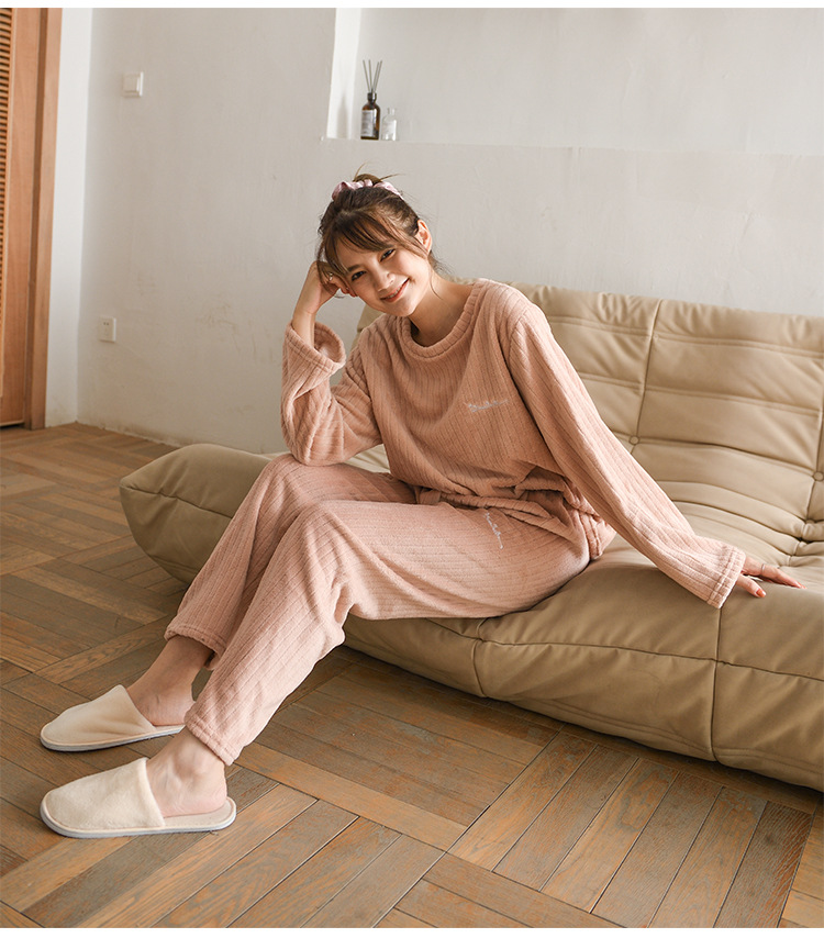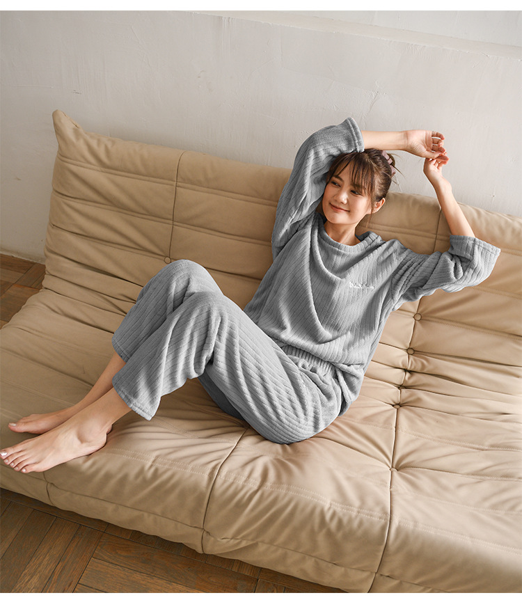 長袖トップスとパンツの上下セットで、リラックスタイムを快適に過ごせます。