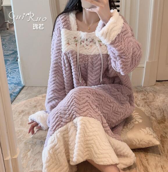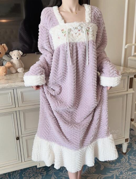 上品な花柄刺繍が美しいネグリジェタイプのルームウェアです。