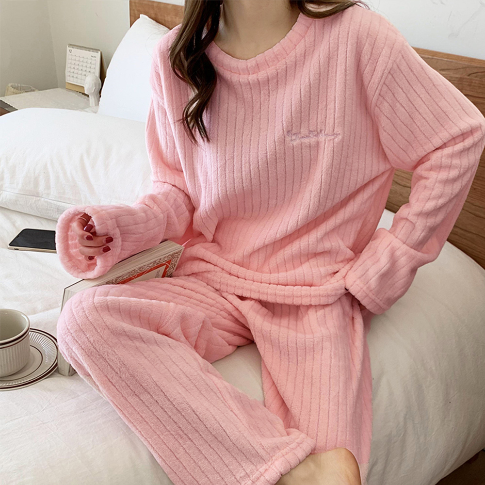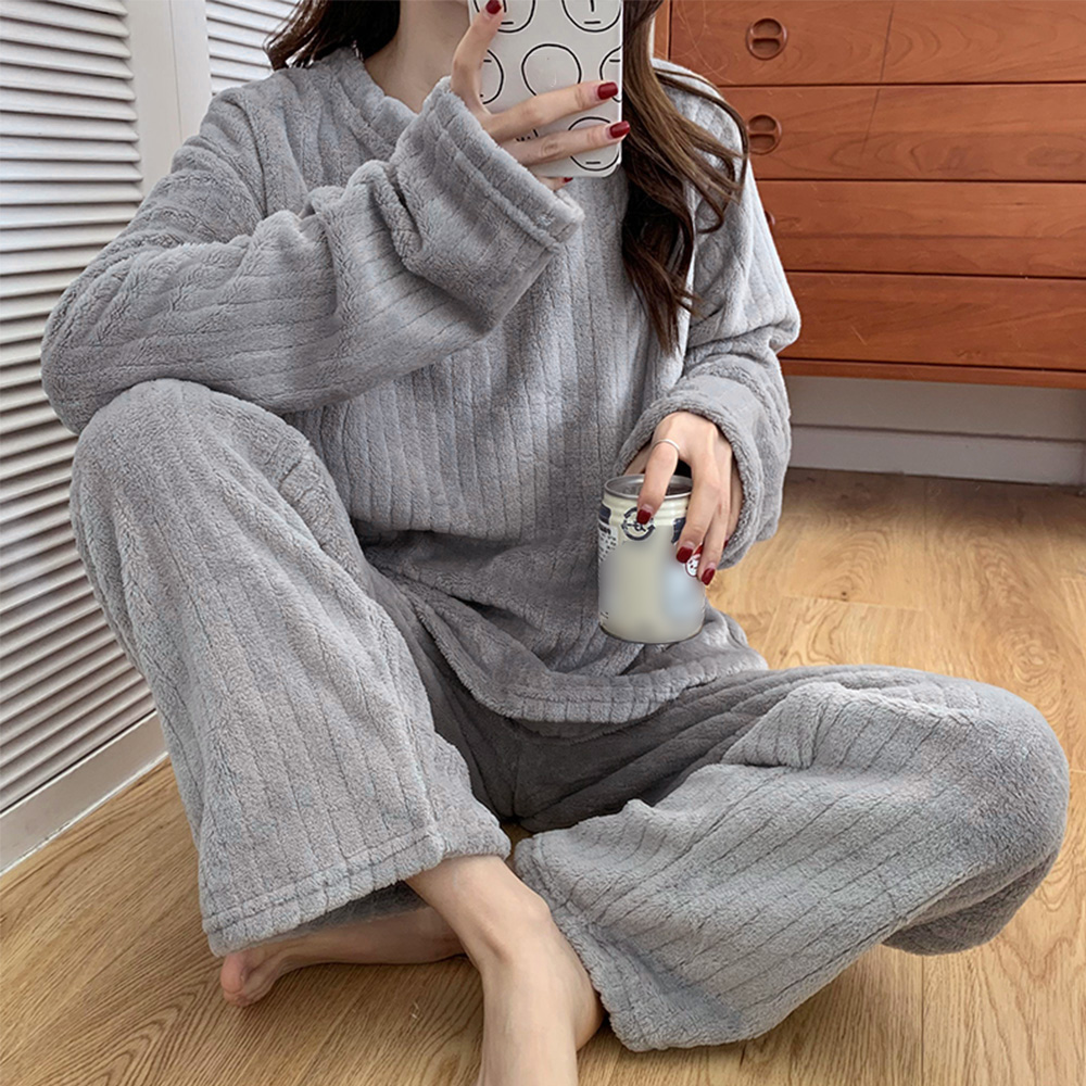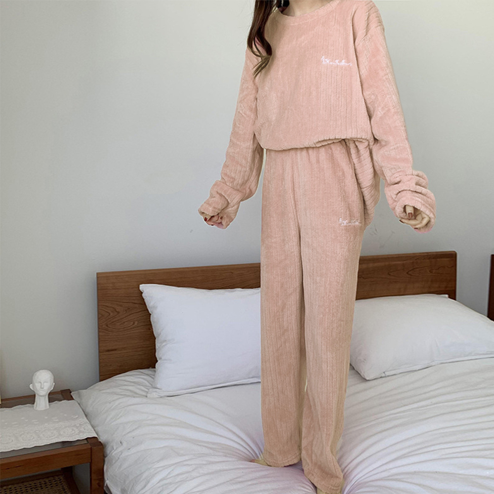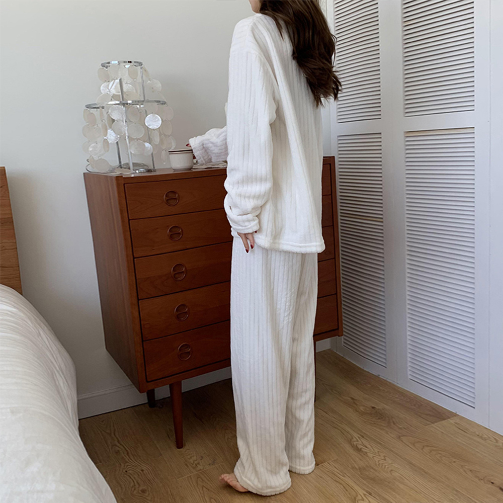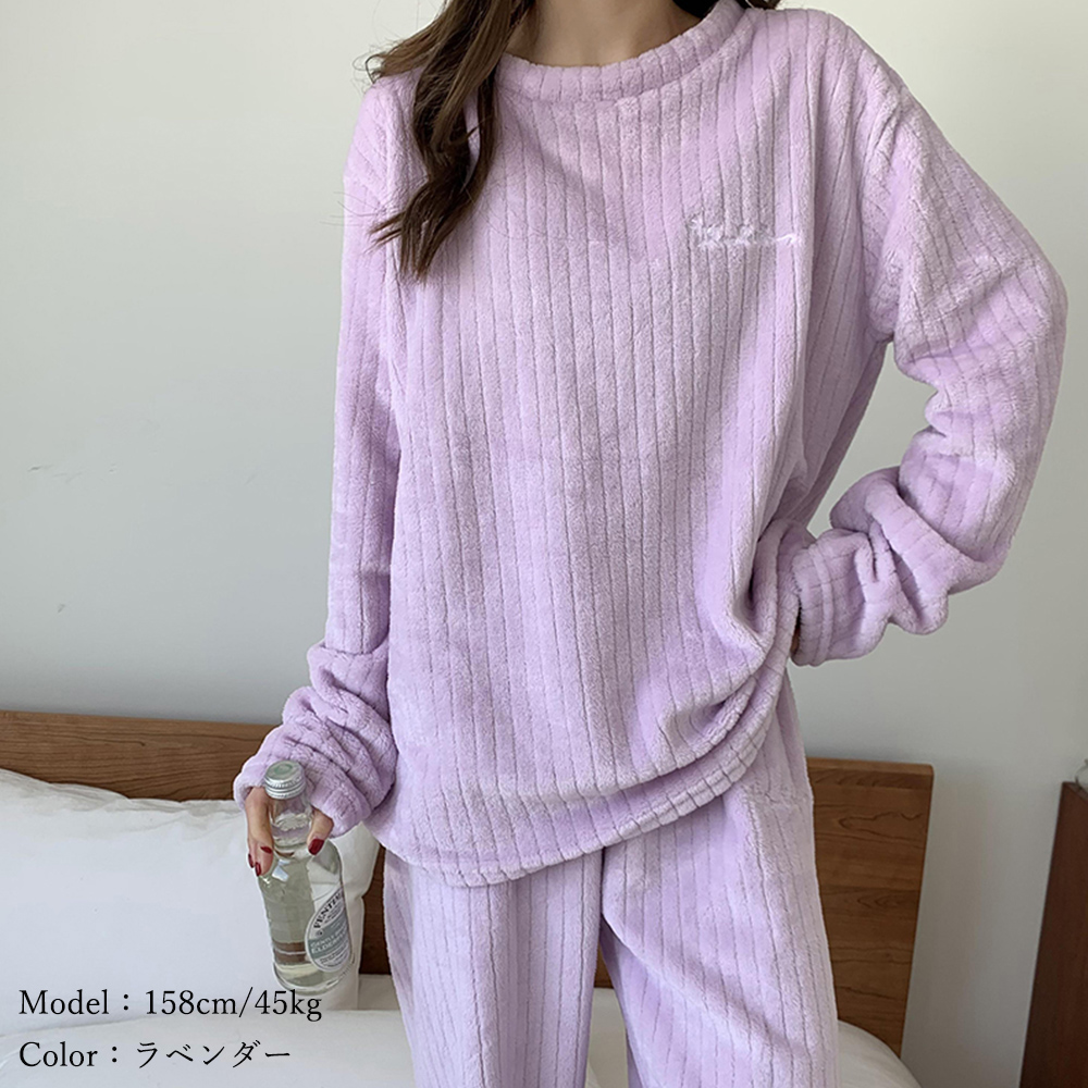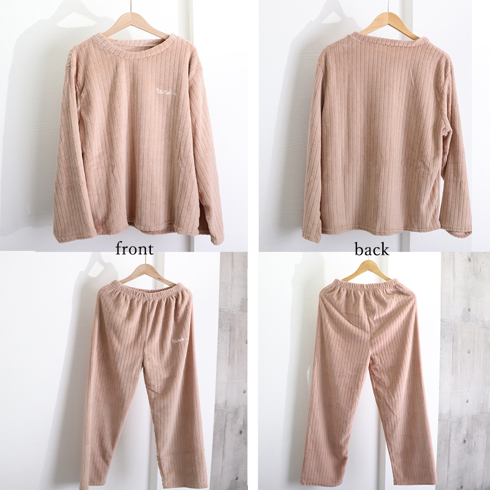 ふわふわもこもこの裏起毛仕様で、冬の部屋着としても最適な厚手パジャマセットです。